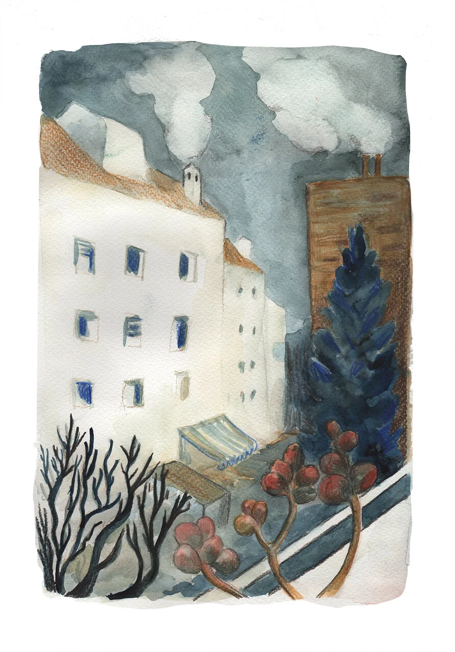Para desarrollar nuestras fuerzas de imaginación, una vez que hayamos contemplado nuestra vista, el siguiente paso sería ampliar nuestro espacio. Seleccionamos un detalle, algo que nos llame la atención, lo dibujamos, o lo imaginamos muy cerca de nosotros y lo plasmamos según nuestra imaginación. O nos fijamos en el cielo, las nubes, los colores: imaginemos esta misma vista, pero en otra estación del año o en otro momento del día, y pintamos esta imagen interior. O bien transformamos nuestra primera visión de lo simplemente cotidiano, enriqueciéndolo con los colores de la alegría, o de la melancolía, o de la fuerza, o del silencio…La clave de este trabajo está en recrearse en las variaciones de una misma imagen.